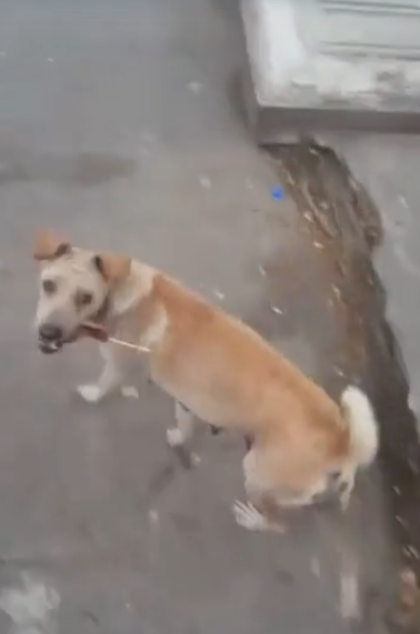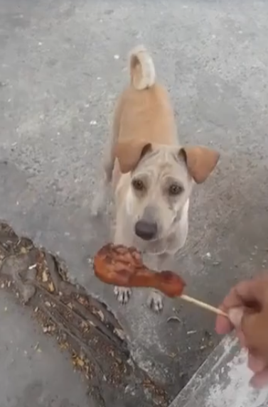 Chú chó mẹ vẫy đuôi xin thức ăn của người qua đường, rồi chạy thẳng về ổ nhường đồ ăn lại cho đàn con, khiến nhiều người cảm động.