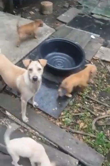 Người quay đoạn video cho biết sự việc xảy ra hôm 16/12. Cảm động trước tình thương của chú chó mẹ dành cho đàn con, anh đã cho chúng chiếc đùi gà còn lại vừa mua ở chợ.