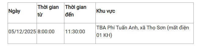 Lịch cúp điện Thọ Sơn