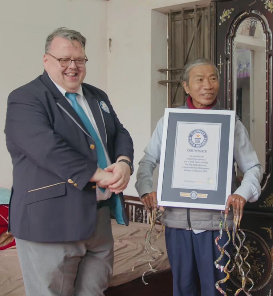 Tổ chức Guinness Thế giới đã đi Từ London đến Ninh Bình để xác minh ông Lưu Công Huyền sở hữu bộ móng tay dài gần 6 m, chính thức ghi danh lên bản đồ Guinness.