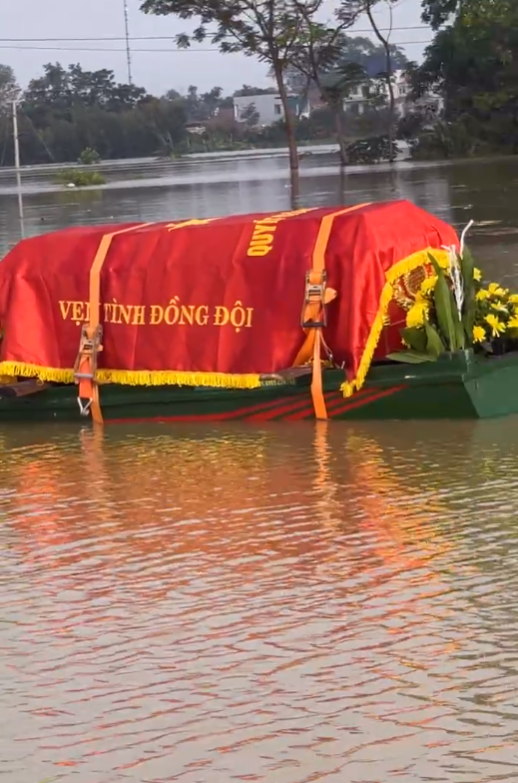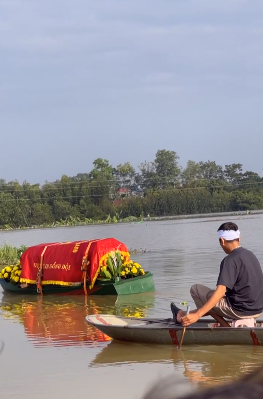 .Giữa khung cảnh tang thương ấy, người dân xót xa tiễn đưa một cựu chiến binh – người từng vào sinh ra tử trong những năm tháng kháng chiến chống Pháp – về với đất mẹ.